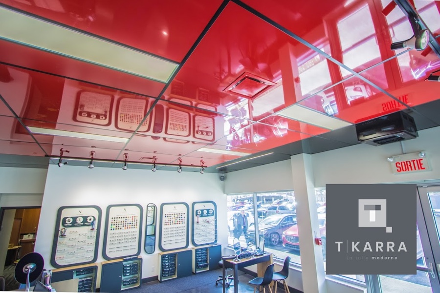 Made from aluminum, the T|Karra suspended ceiling tile is the modern solution for avoiding stained, yellowed, damaged and rounded tiles.