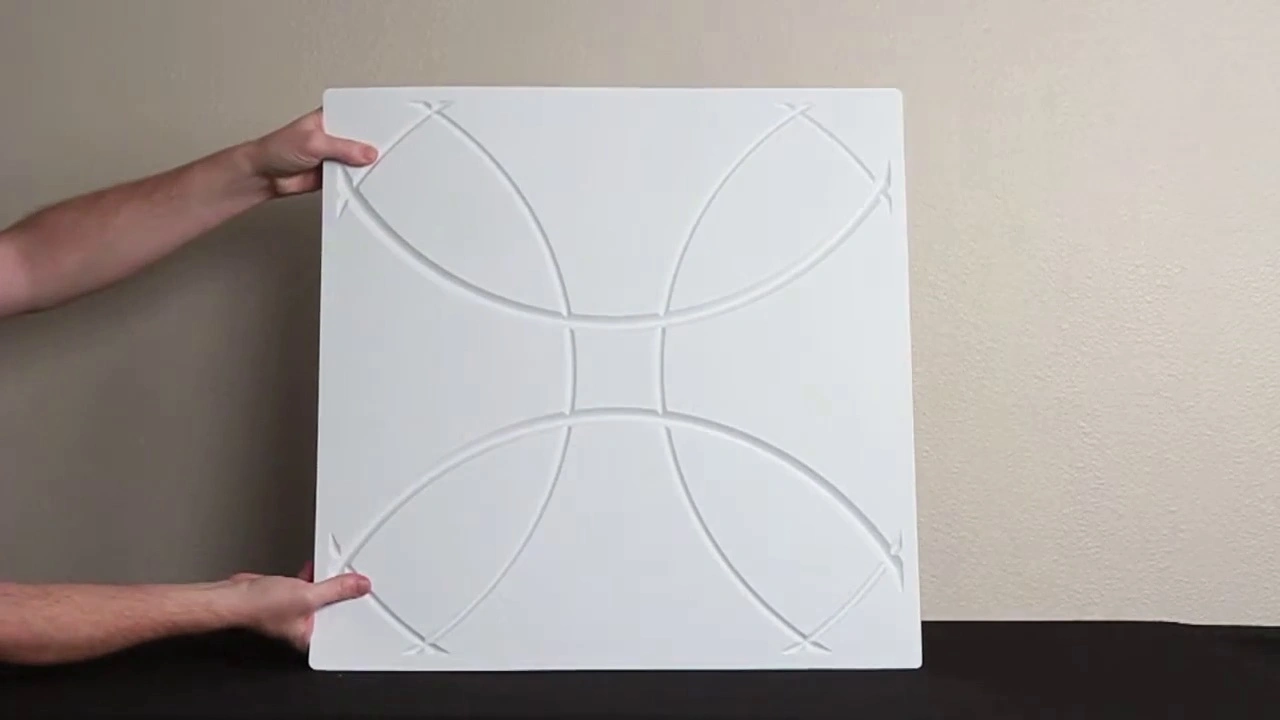 The Ceilume Celestial glue-up ceiling tiles (panels) are 3D-formed from a thin vinyl just 0.030 inches thick, these tiles are lightweight and easy to handle. The inherent strength of vinyl along with the simplicity of the design make these panels strong, durable and easy to install.